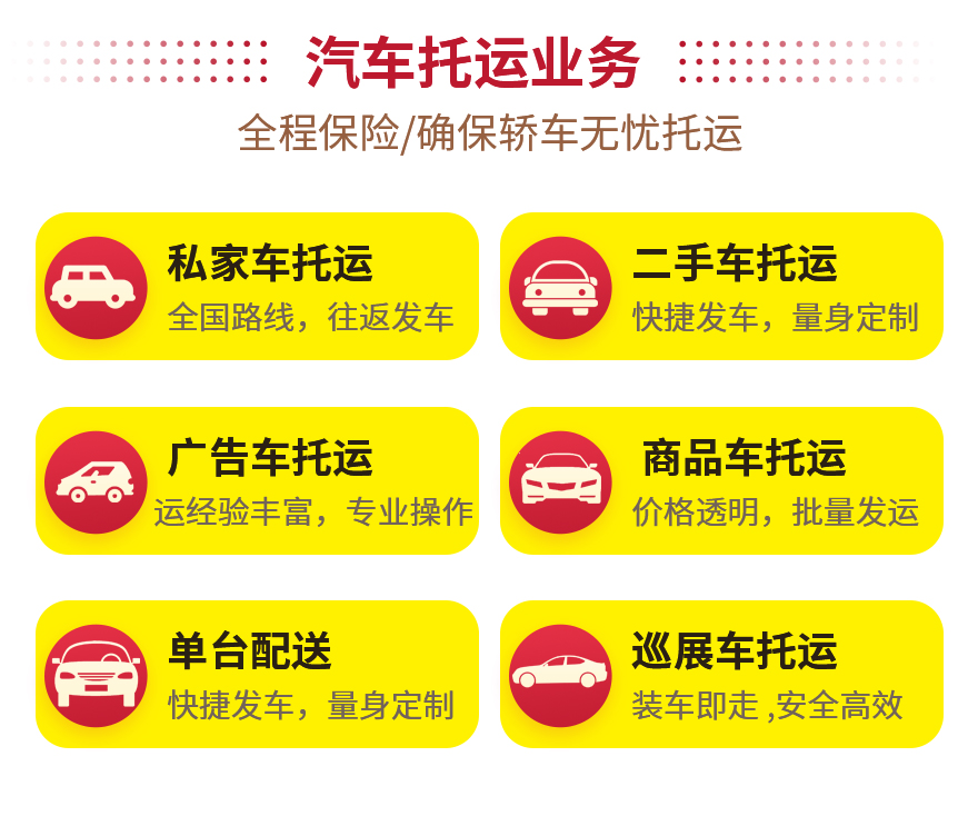 答:第一、普通货运物流公司没有专门运车的笼车,如果用普通货运物流车辆运车,由于无专业固定装置,车辆很大可能出现擦挂,安全性很难保证。 问:为什...
